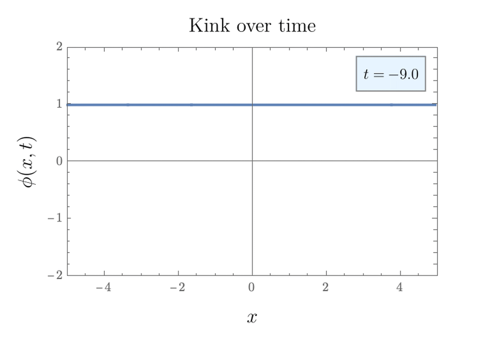 For static solutions, i.e. \(\partial_t\phi=0\), one can show that the field equation admits a kink soliton solution, connecting two vacua,